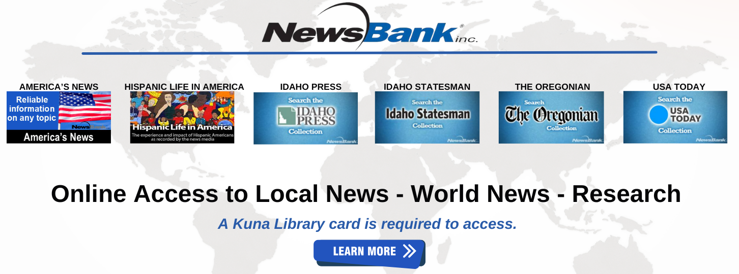 A FREE source for news and research through access to America's News, Hispanic Life in America, the Idaho Press, the Idaho Statesman, The Oregonian, and USA Today.