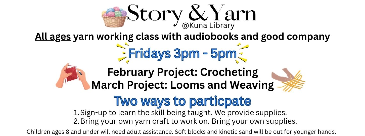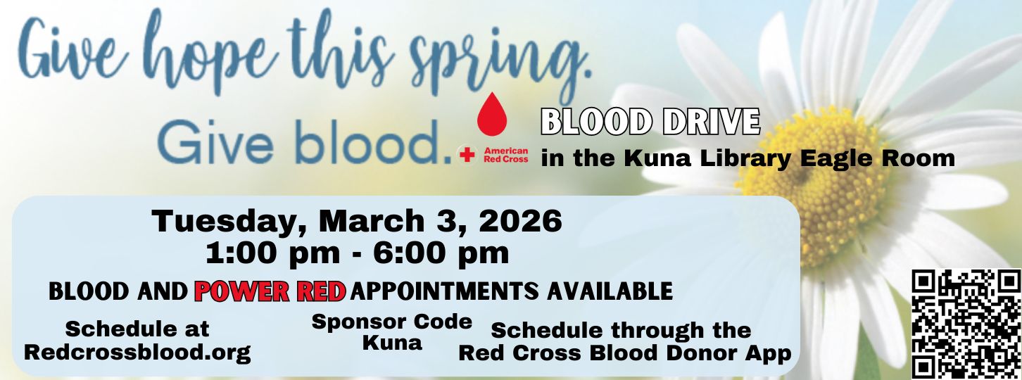 Borrow eBooks and audiobooks from the Kuna Library collection via the FREE Libby app. Click on the image above for details.