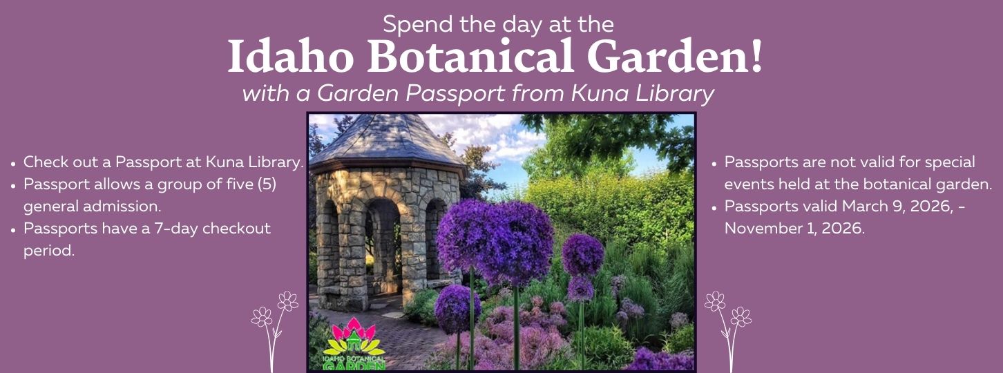 Renew items you have checked out. Reserve items you'd like to borrow or search our catalog. Kuna Library card is required for some features.